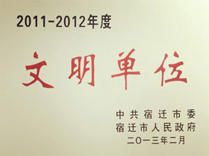 集團(tuán)先后獲得宿遷市精神文明單位、宿遷市先進(jìn)基層黨組織、宿遷市工人先鋒號、宿遷市“五四”紅旗團(tuán)委、江蘇省青年學(xué)習(xí)社、江蘇省“五四”紅旗團(tuán)委、江蘇省和諧勞動關(guān)系模范企業(yè)、宿遷市職工文化建設(shè)示范單位、全國職工書屋、江蘇省價格誠信單位等榮譽(yù)稱號。